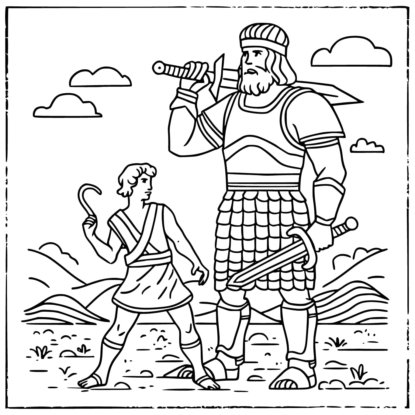 Druckbare David und Goliath