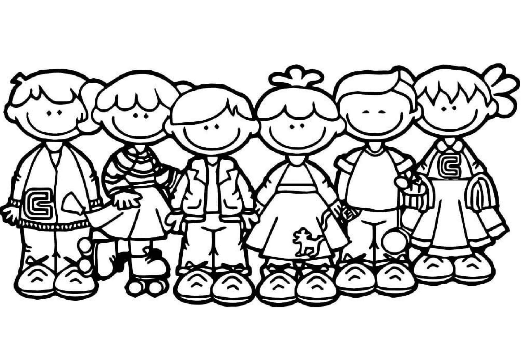 Sechs Kinder auf der Erde am glücklichen Kindertag