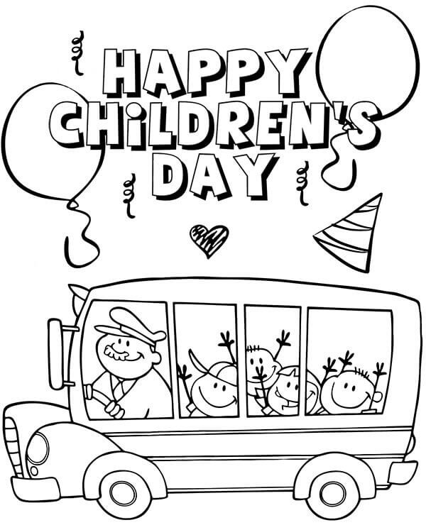 Schulbus am glücklichen Kindertag