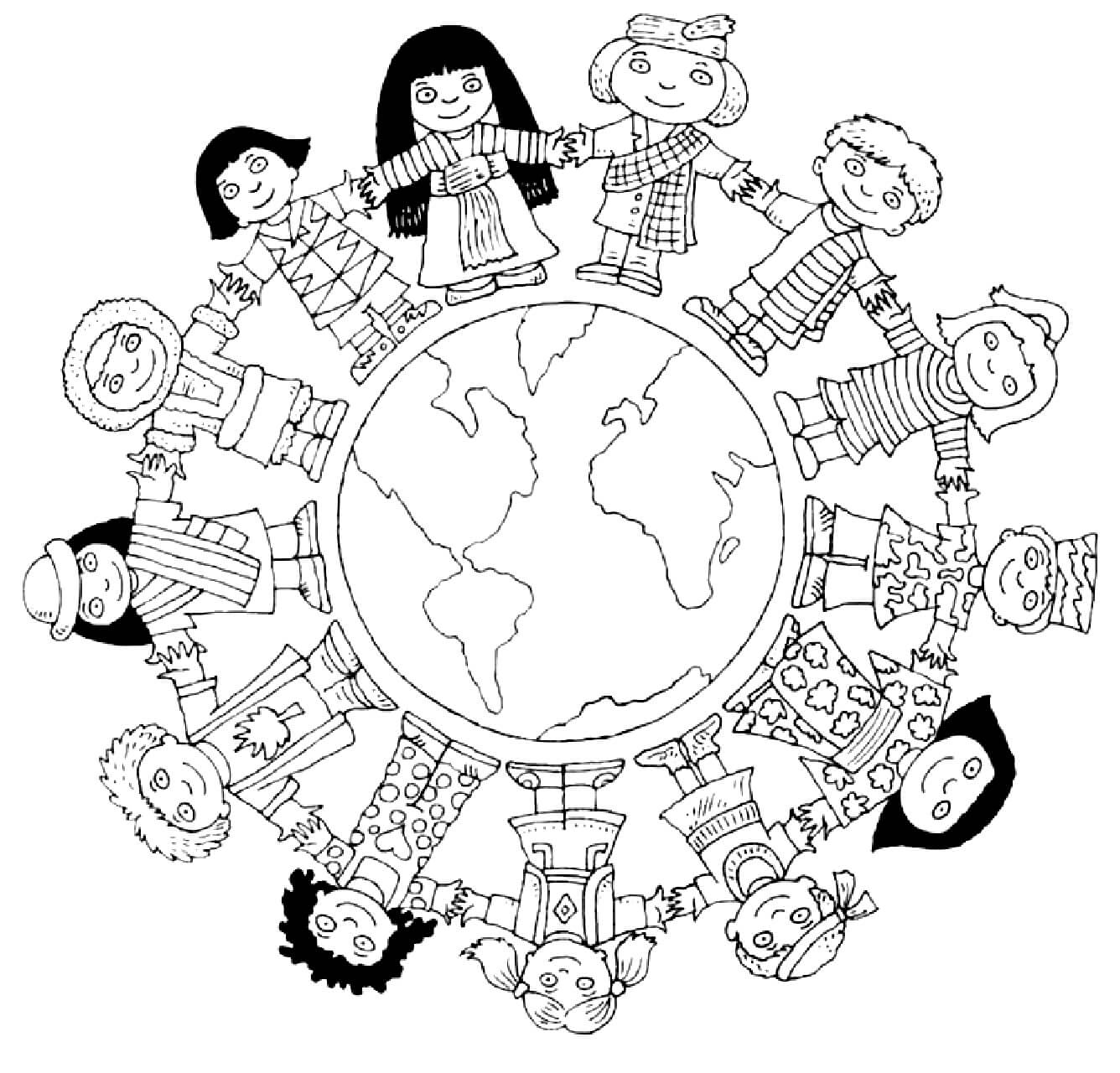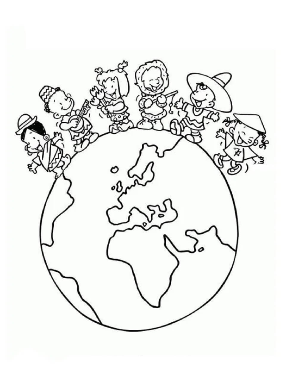 Fünf Kinder mit der Erde am Kindertag