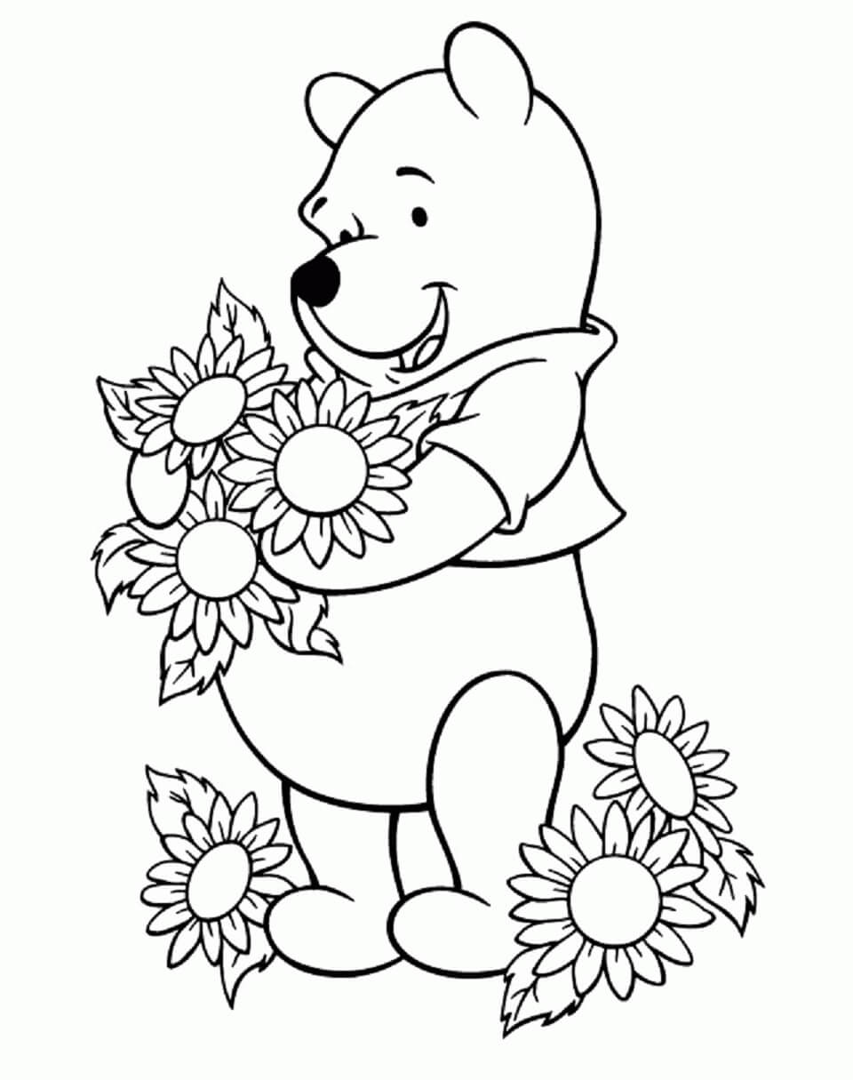 Der fröhliche Winnie The Pooh trägt Sonnenblumen